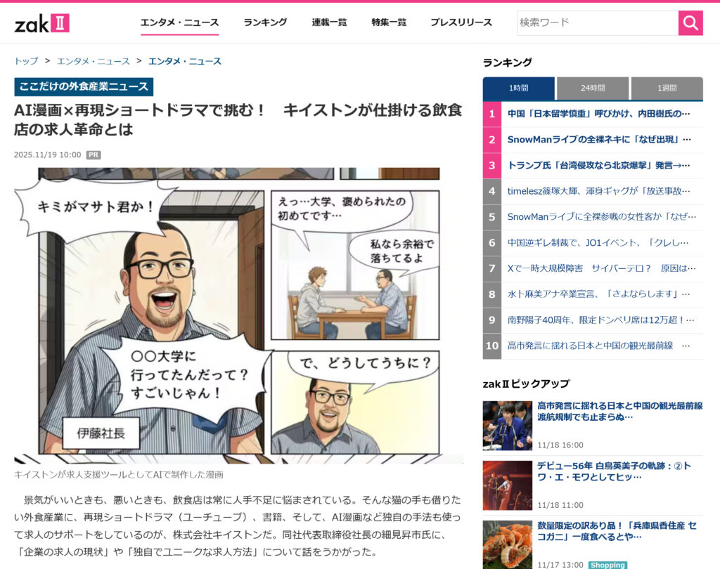 AI漫画×再現ショートドラマで挑む! キイストンが仕掛ける飲食店の求人革命とは